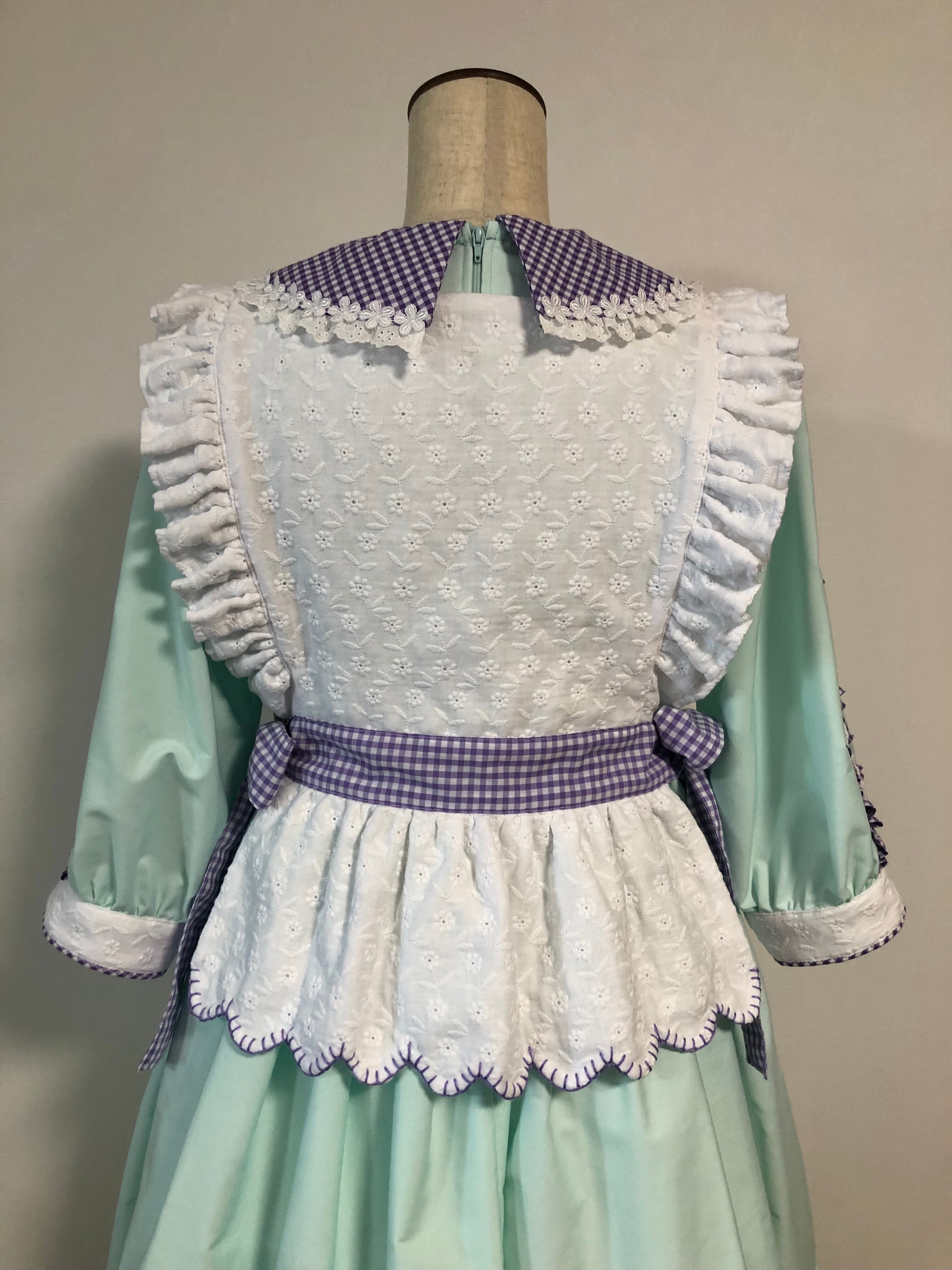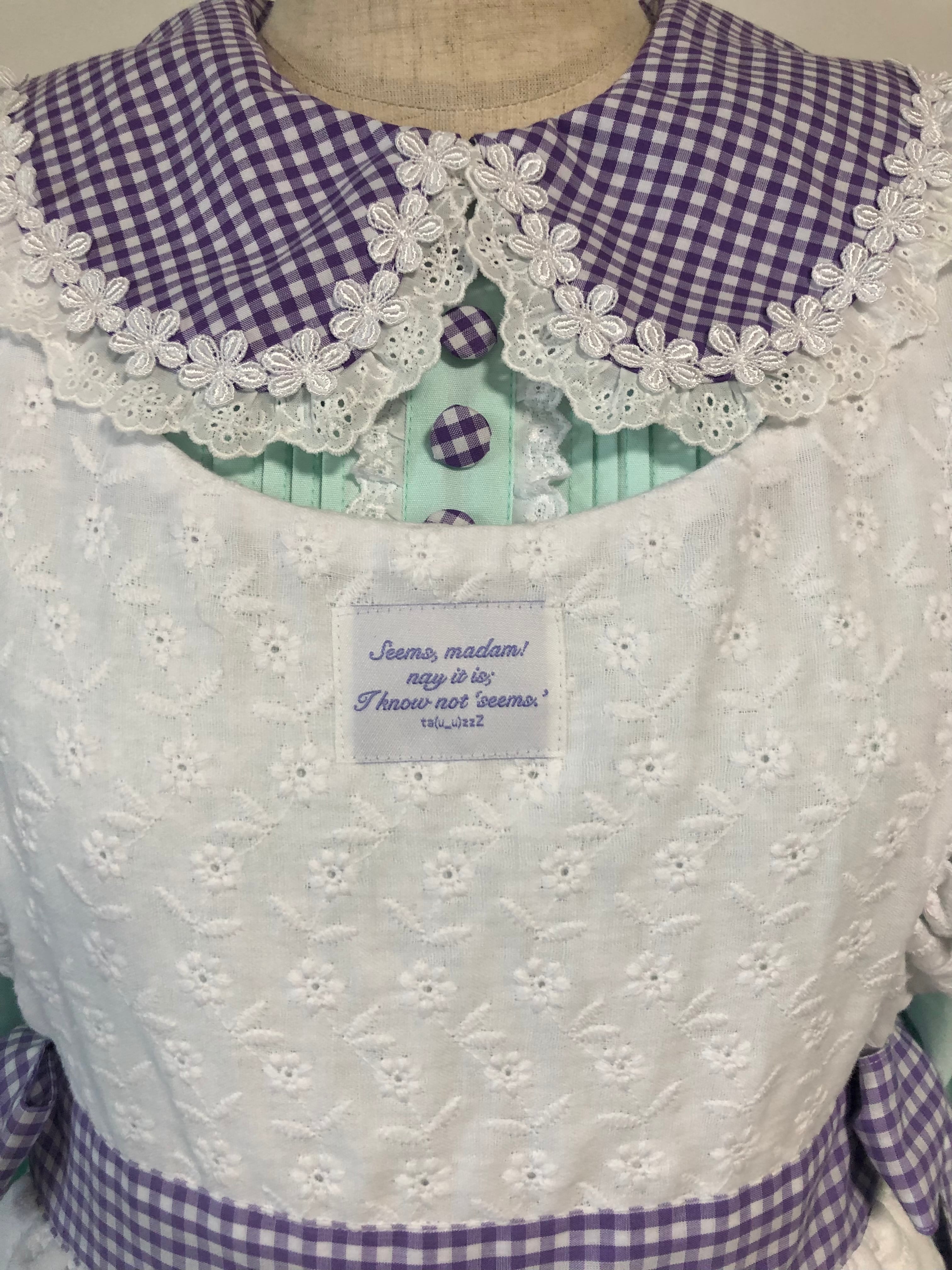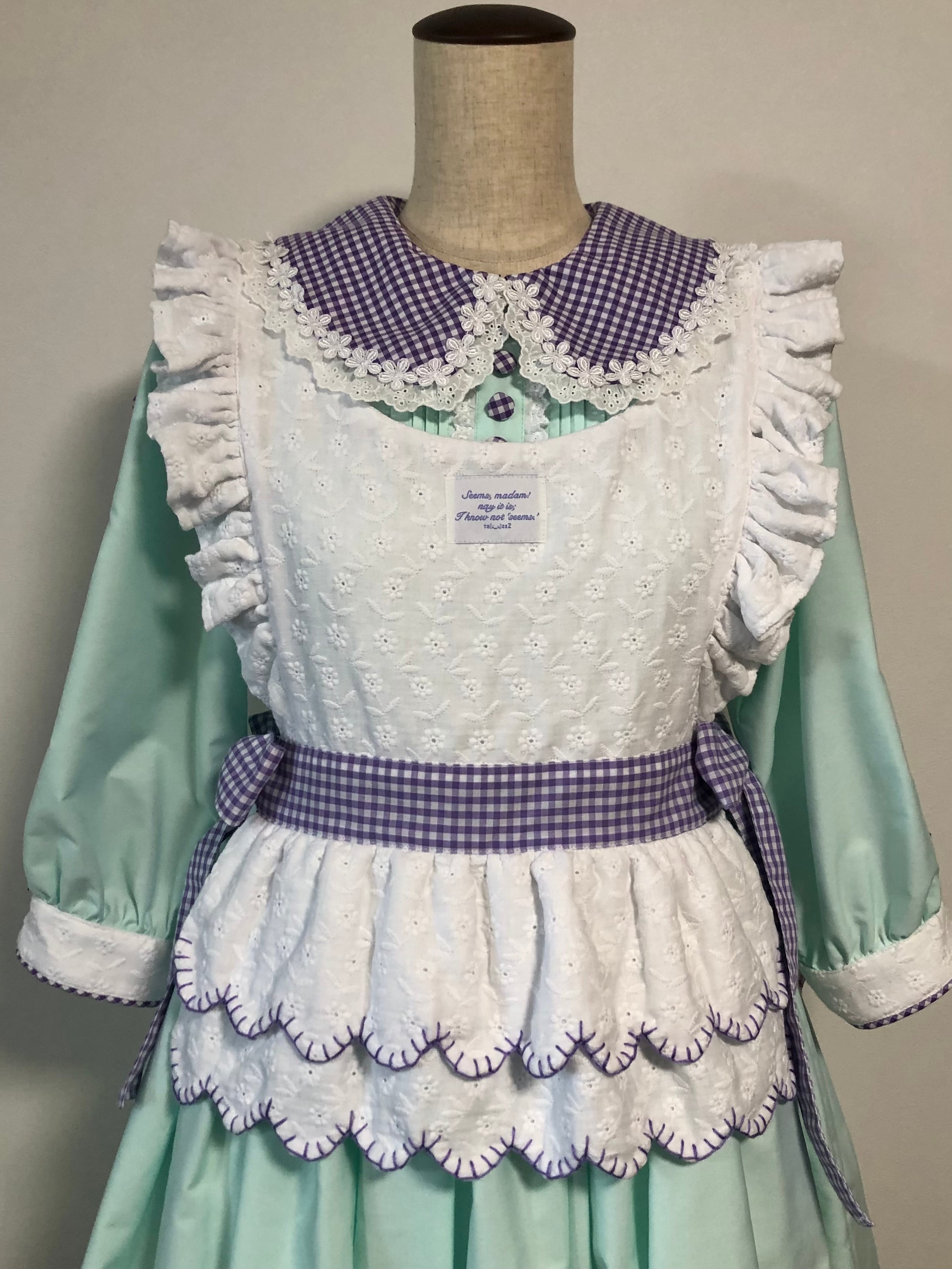 裾のスカラップとひと針ひと針手作業で縫ったブランケットステッチがポイント。