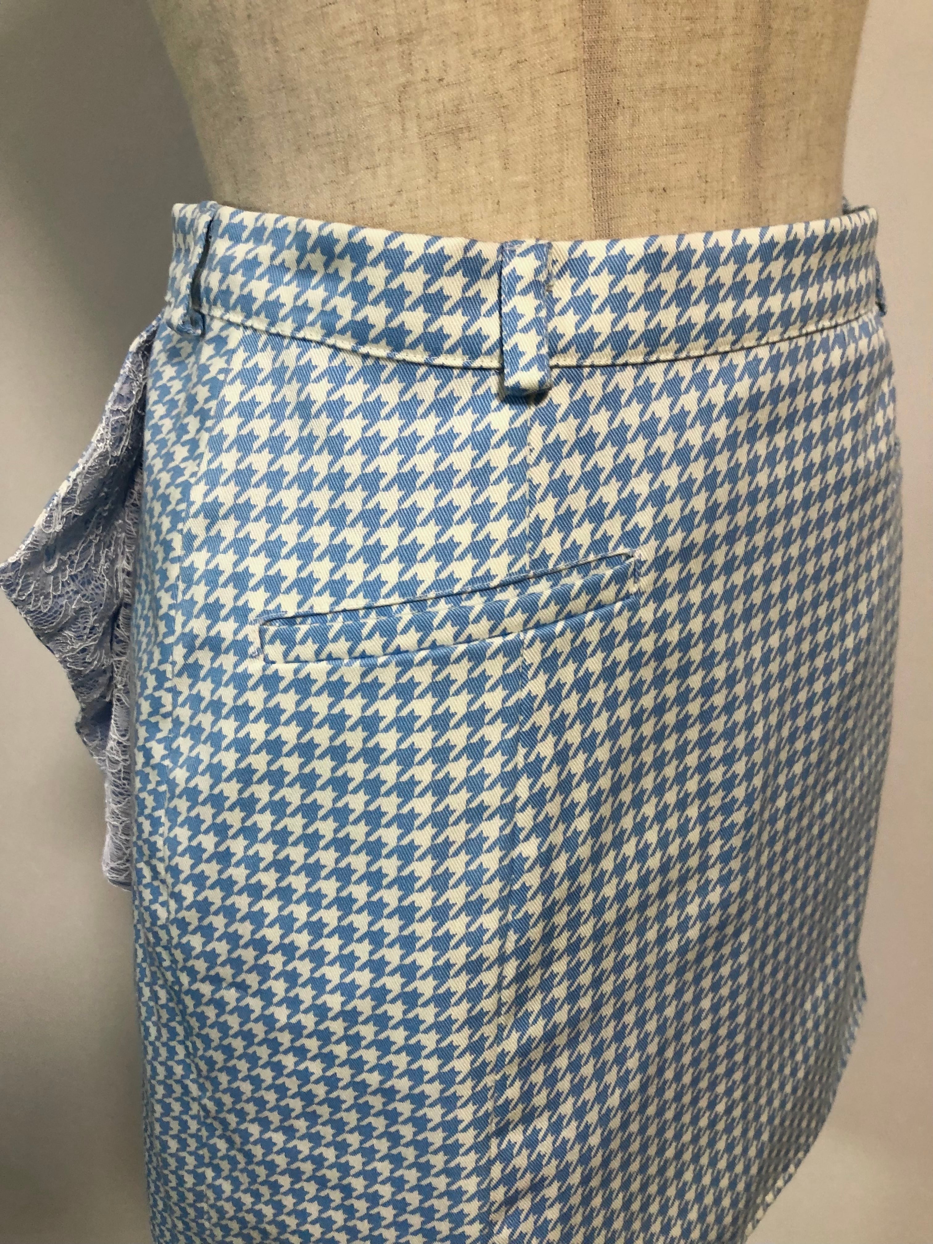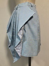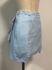 後ろのフリルはチラッと見える裏地がポイント。フリルでボリュームを出すことによってヒップラインも気になりません。