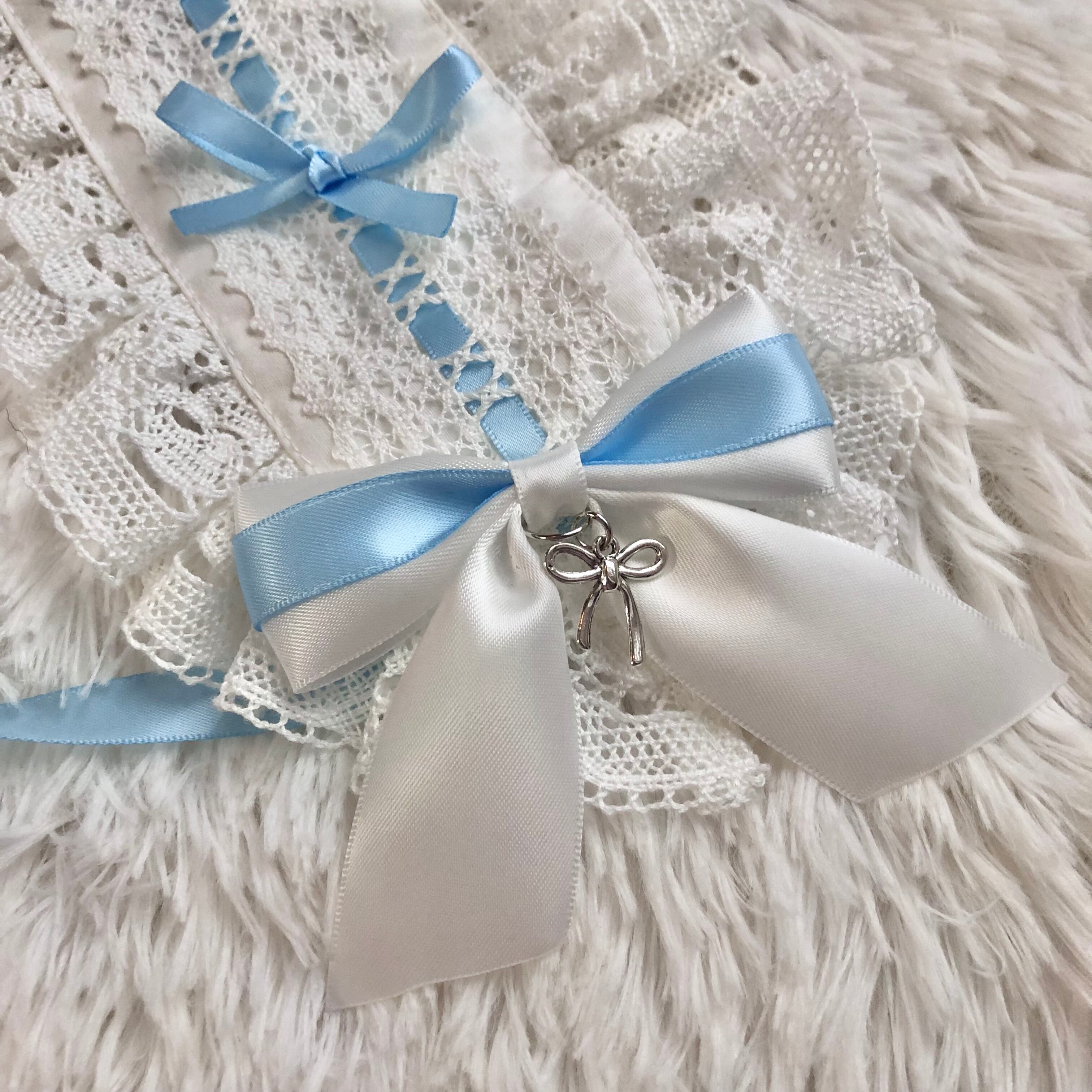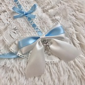 オフ白×サックスリボン